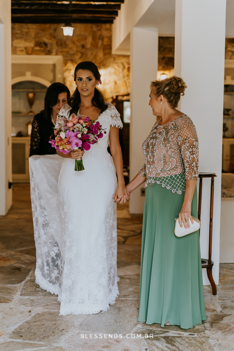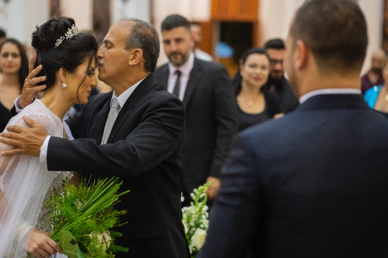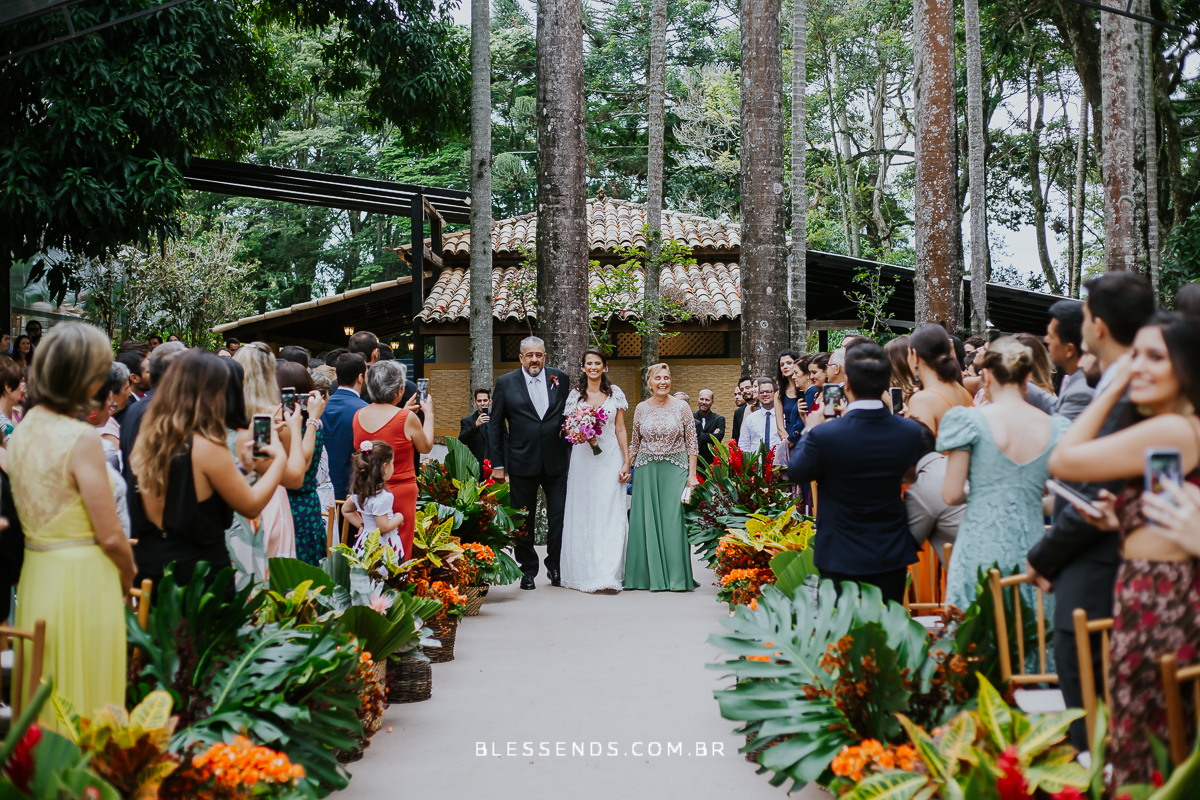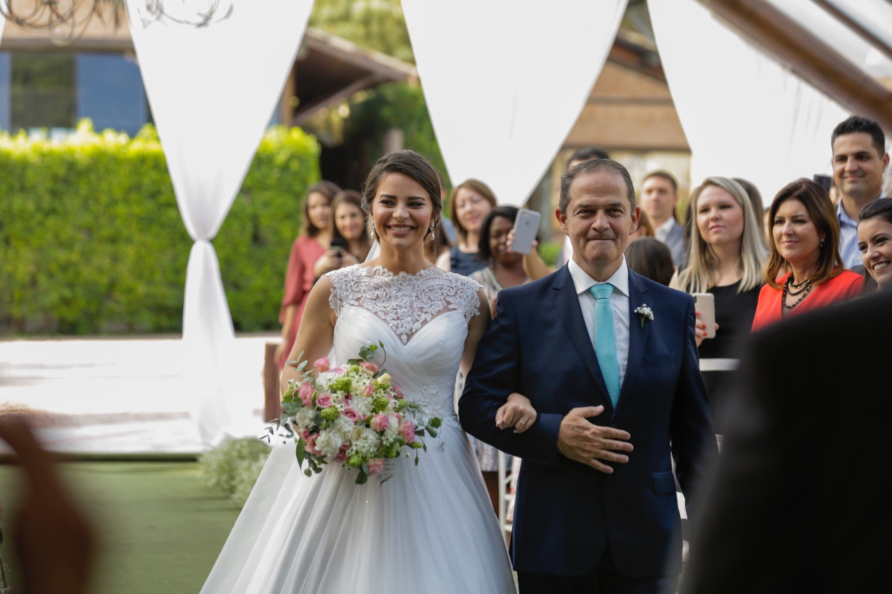 A Laura entrou com a mãe por um longo trecho e depois o pai s conduziu até o altar, ao encontro do amado! Foi realmente bem linda a cerimônia, com um padre super querido e fofo, super conhecido do casal da época de faculdade!