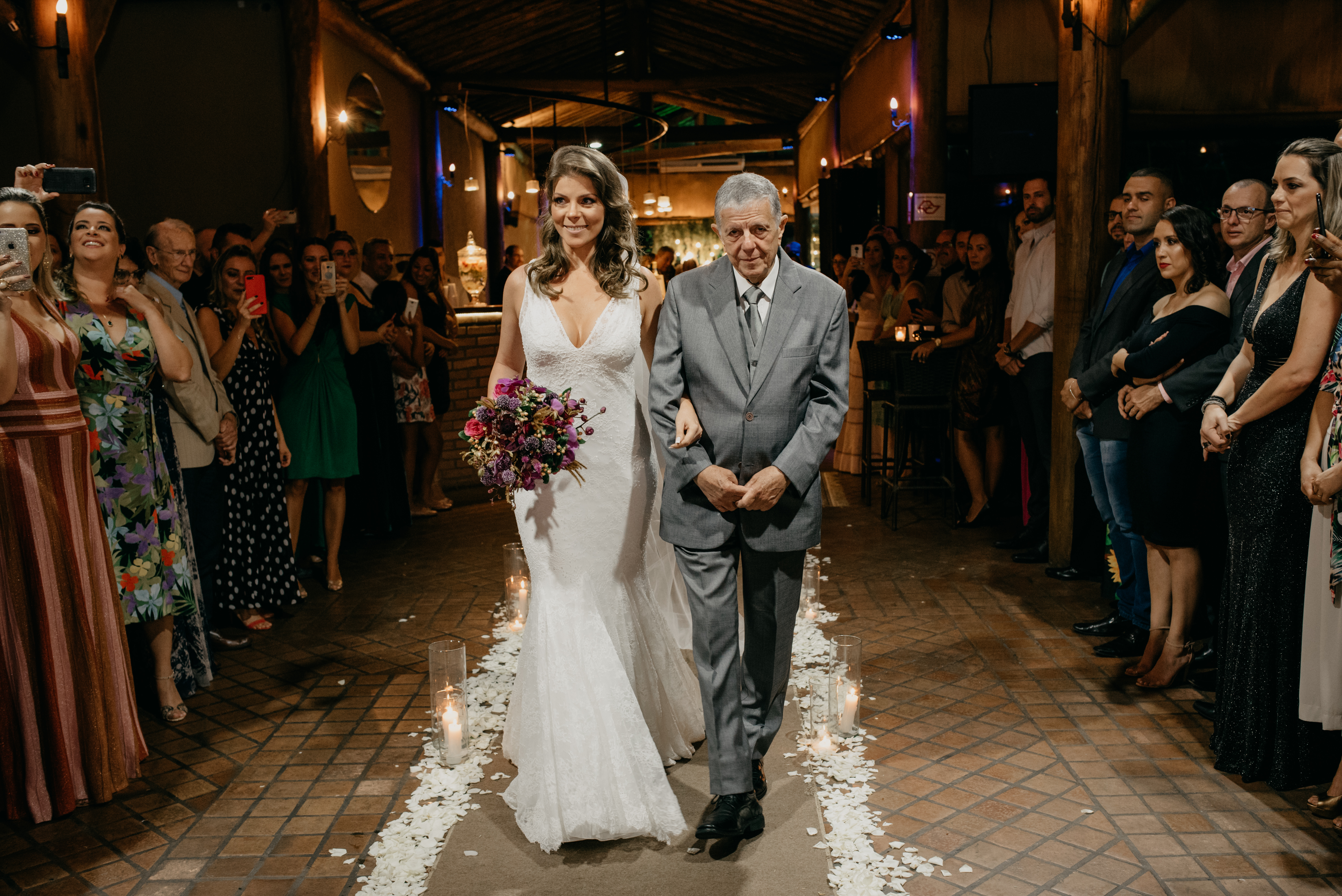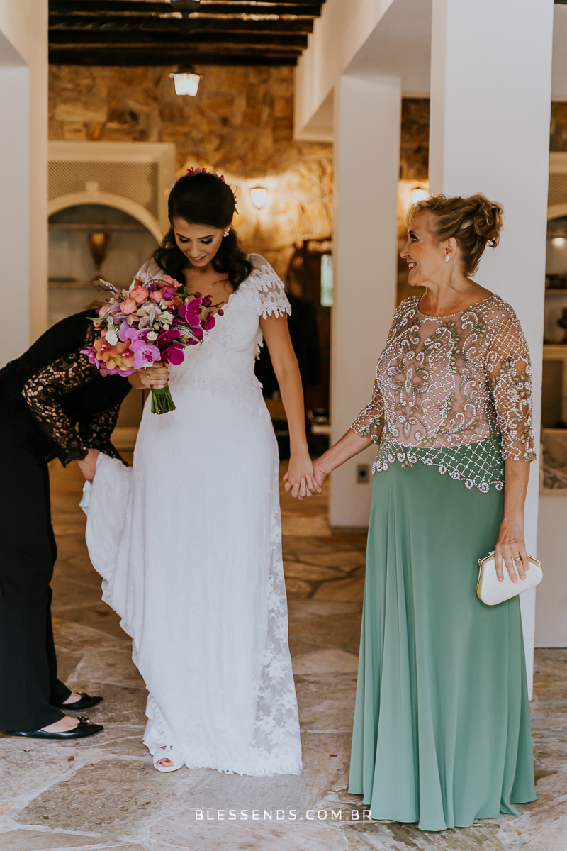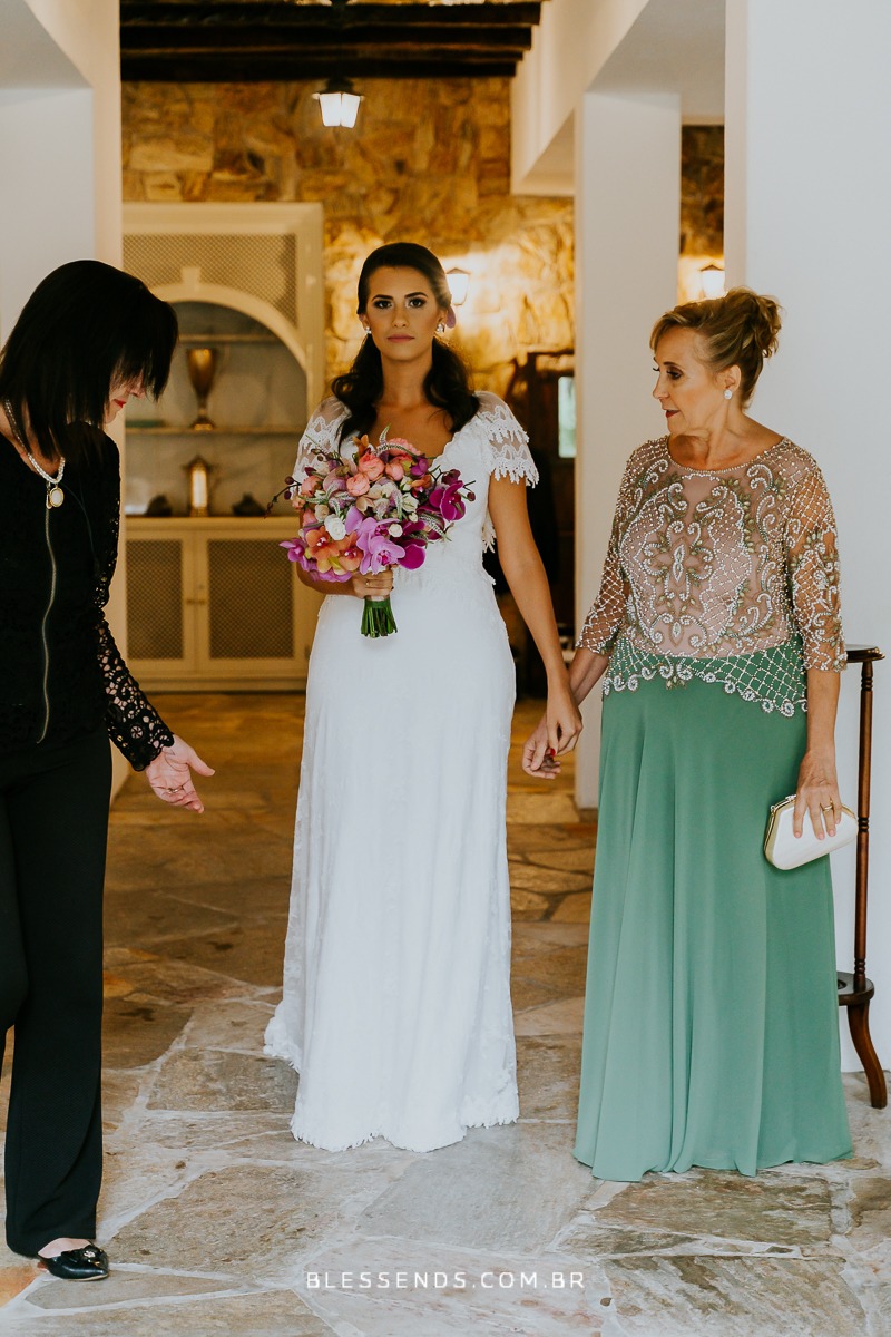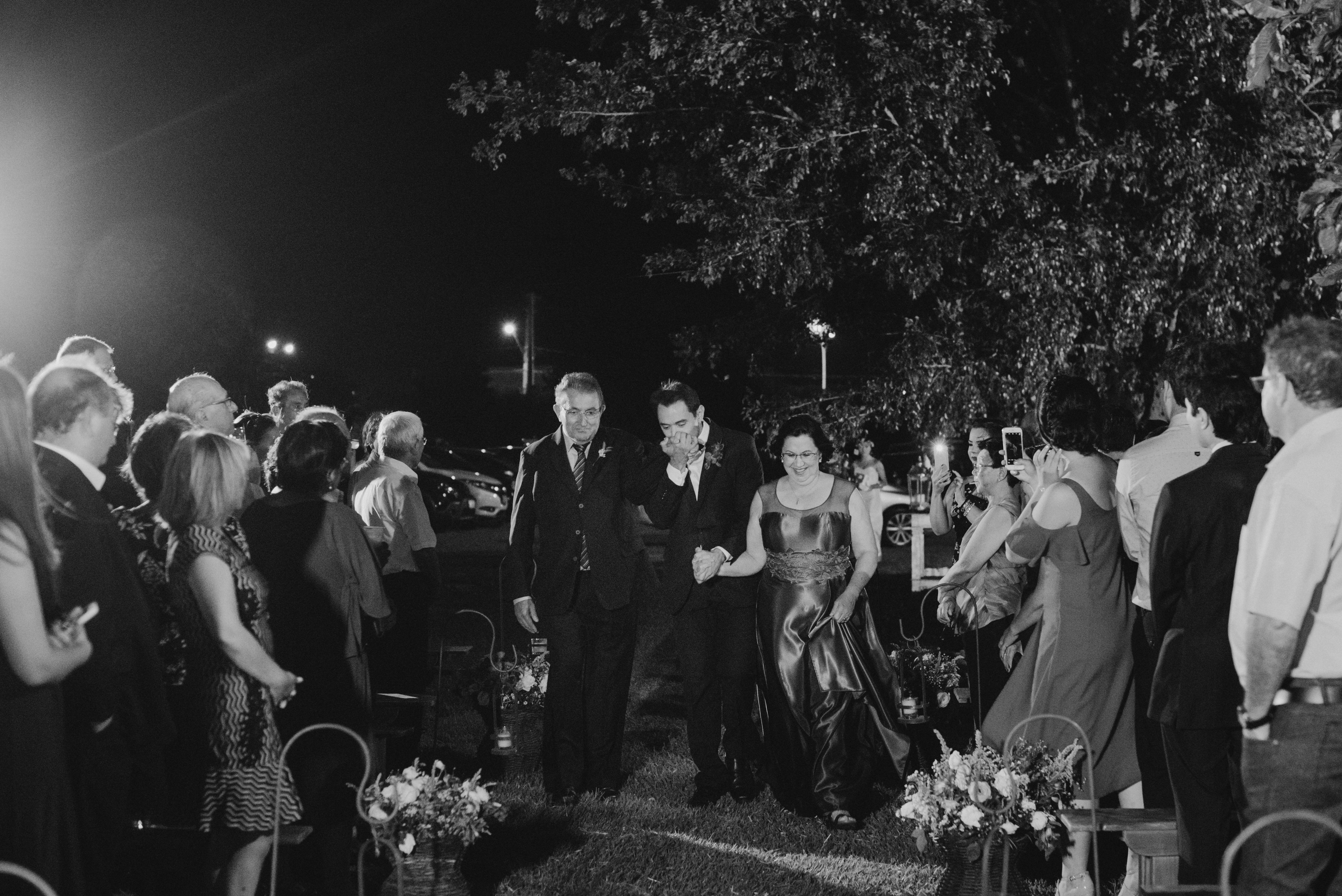 A Laura entrou com a mãe por um longo trecho e depois o pai s conduziu até o altar, ao encontro do amado! Foi realmente bem linda a cerimônia, com um padre super querido e fofo, super conhecido do casal da época de faculdade!