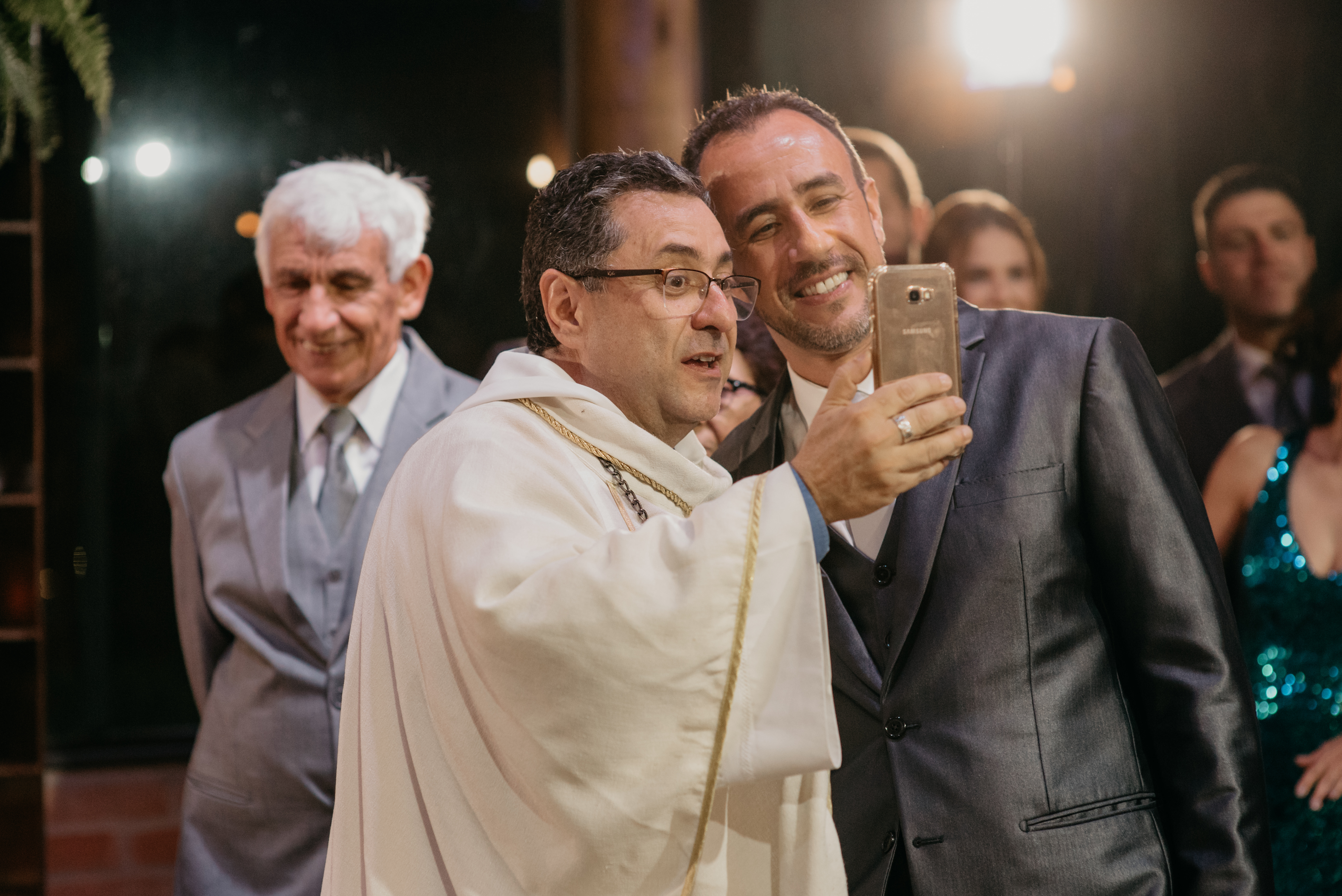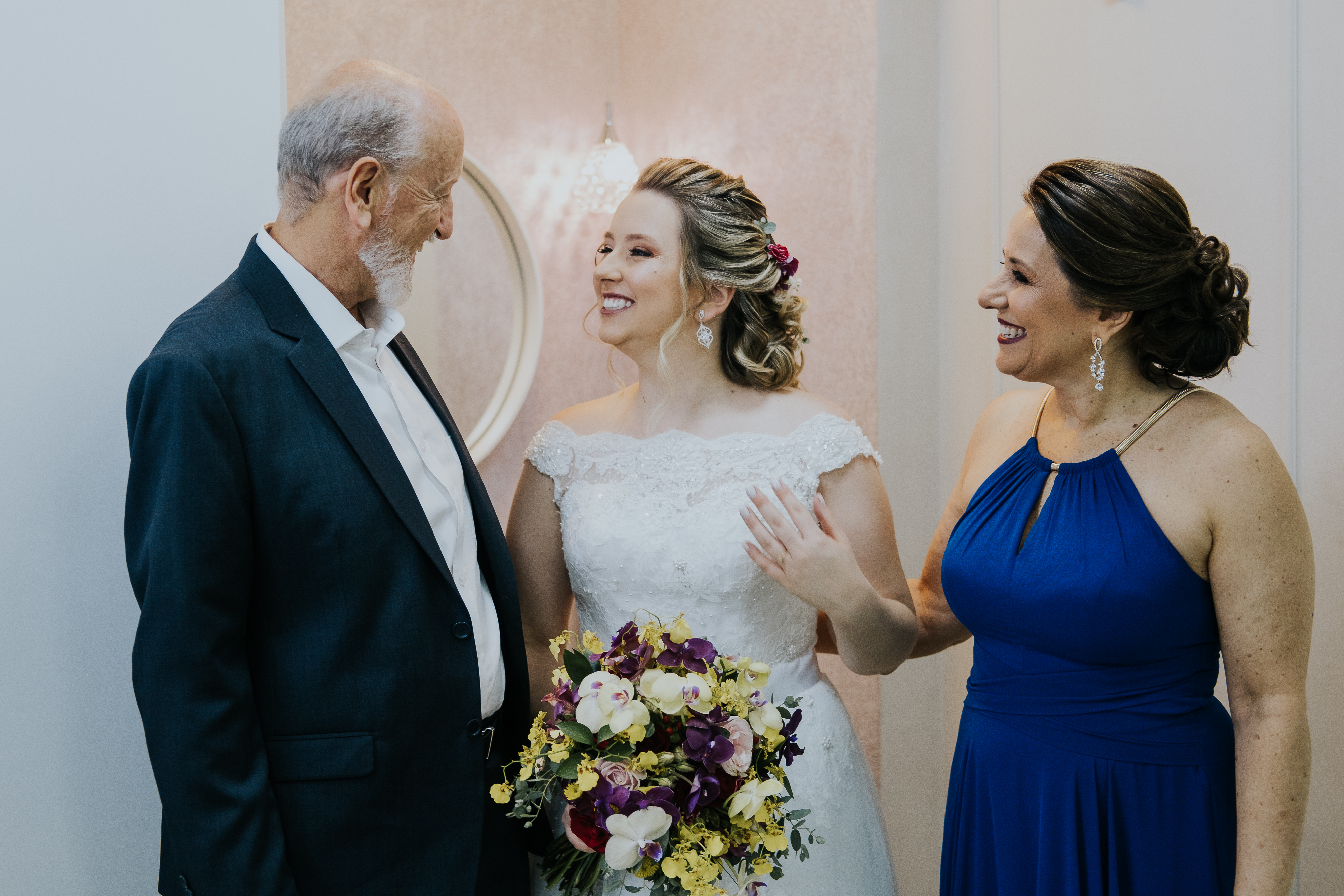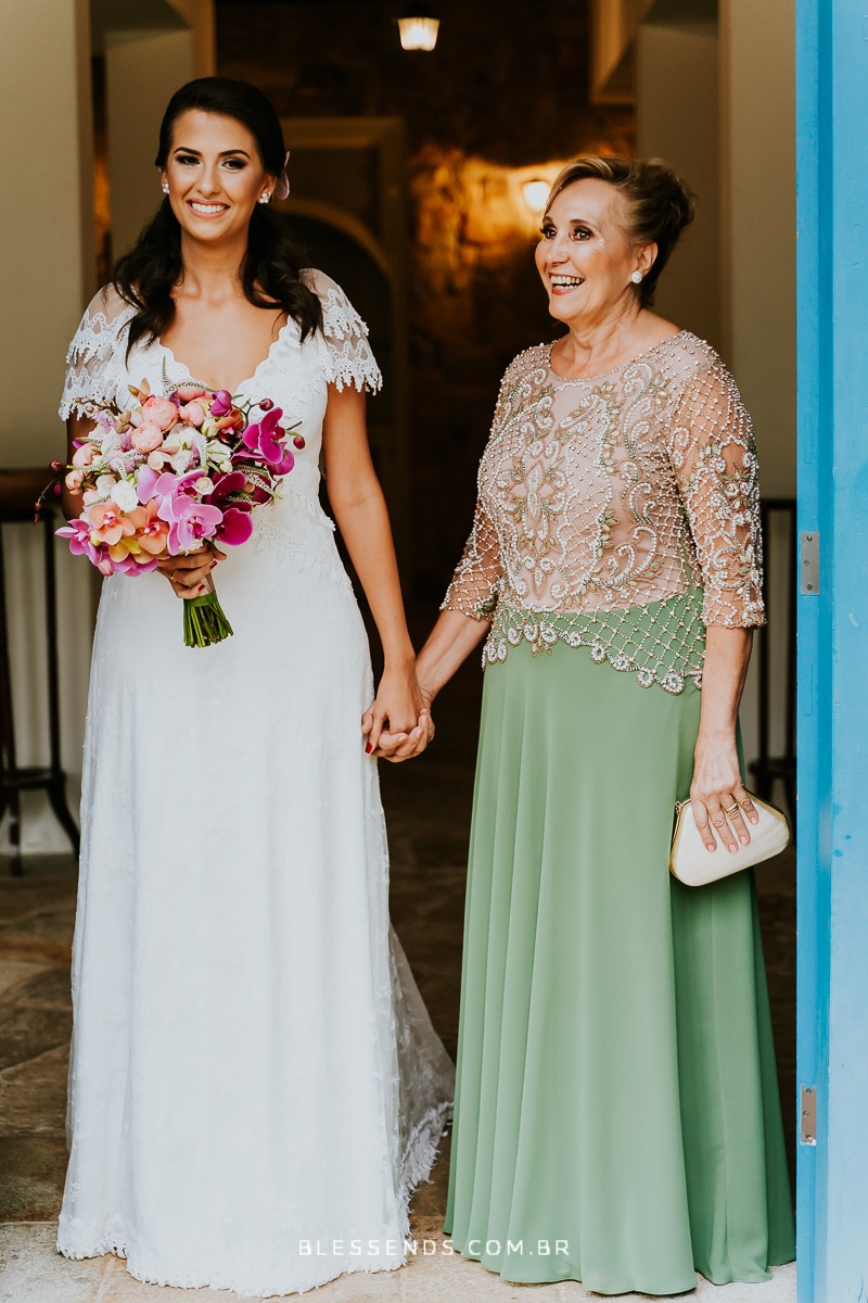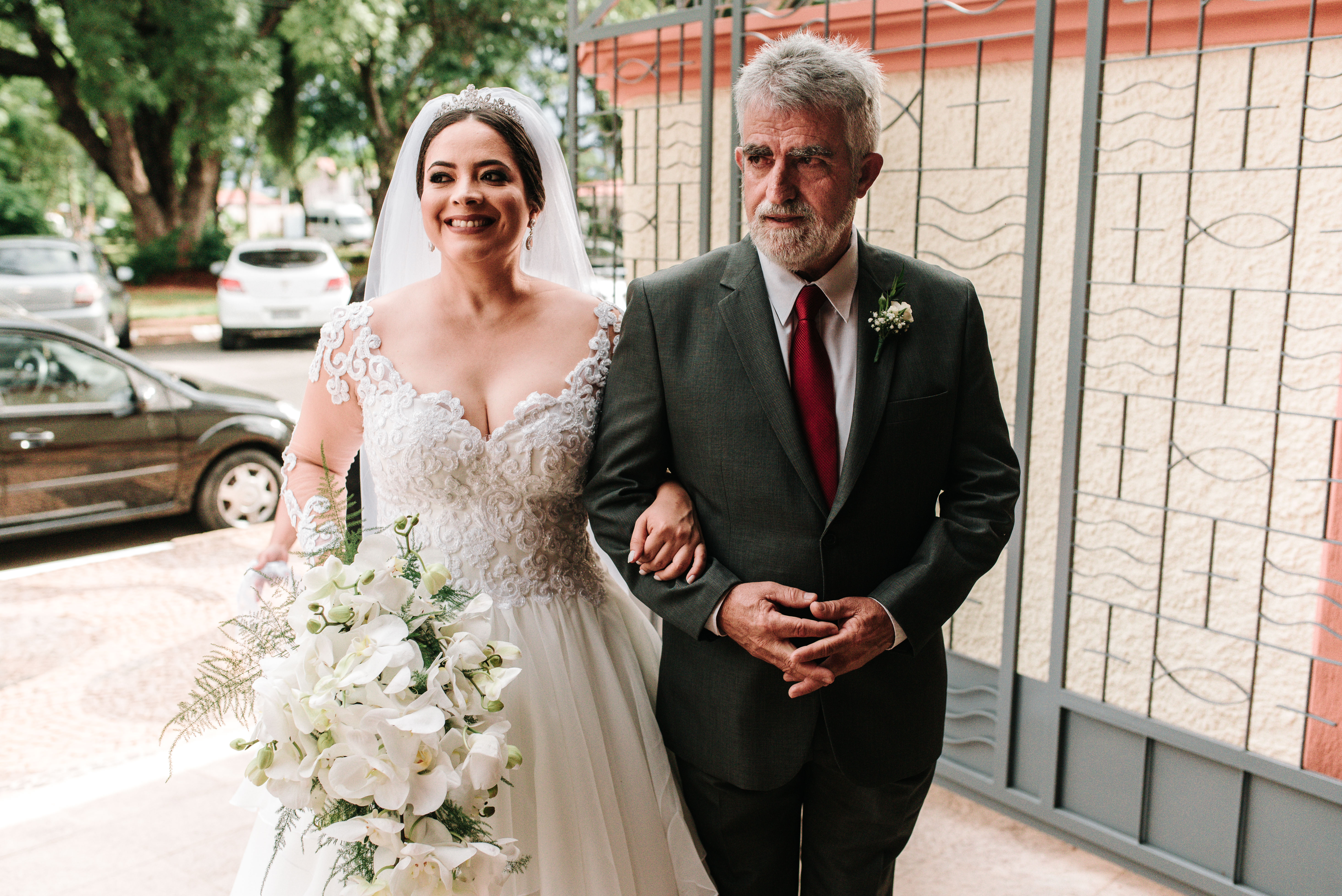 A Laura entrou com a mãe por um longo trecho e depois o pai s conduziu até o altar, ao encontro do amado! Foi realmente bem linda a cerimônia, com um padre super querido e fofo, super conhecido do casal da época de faculdade!