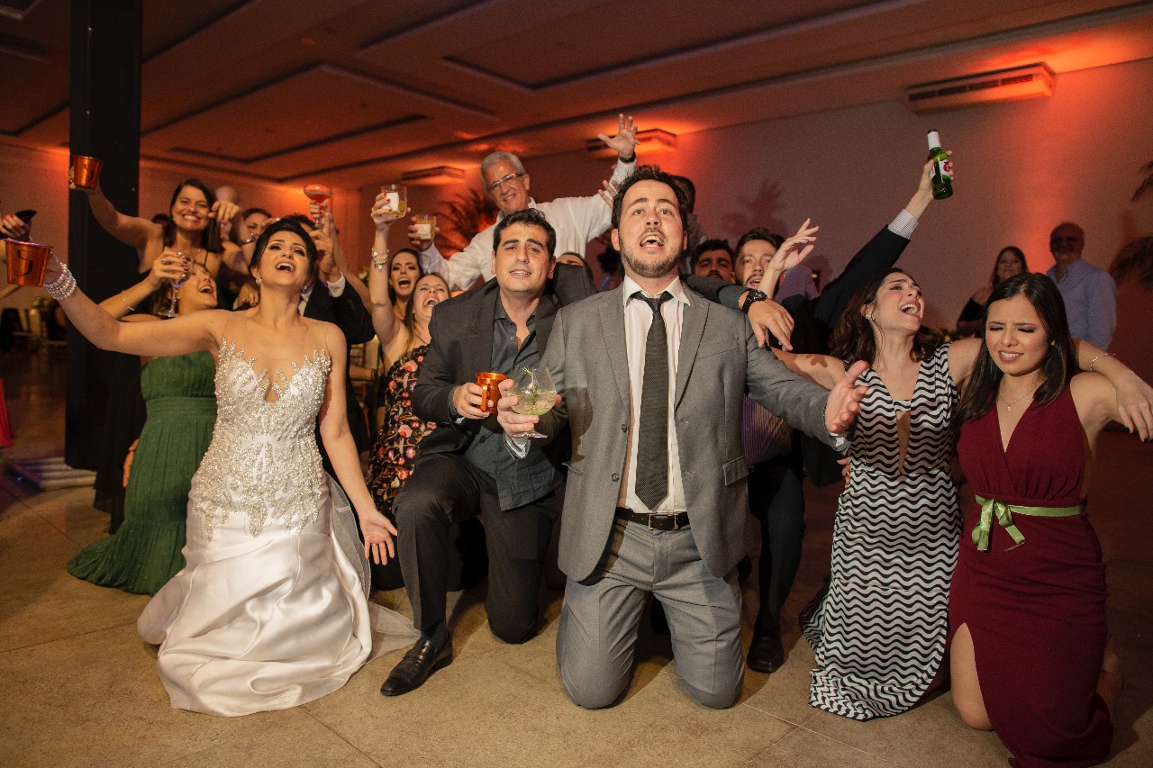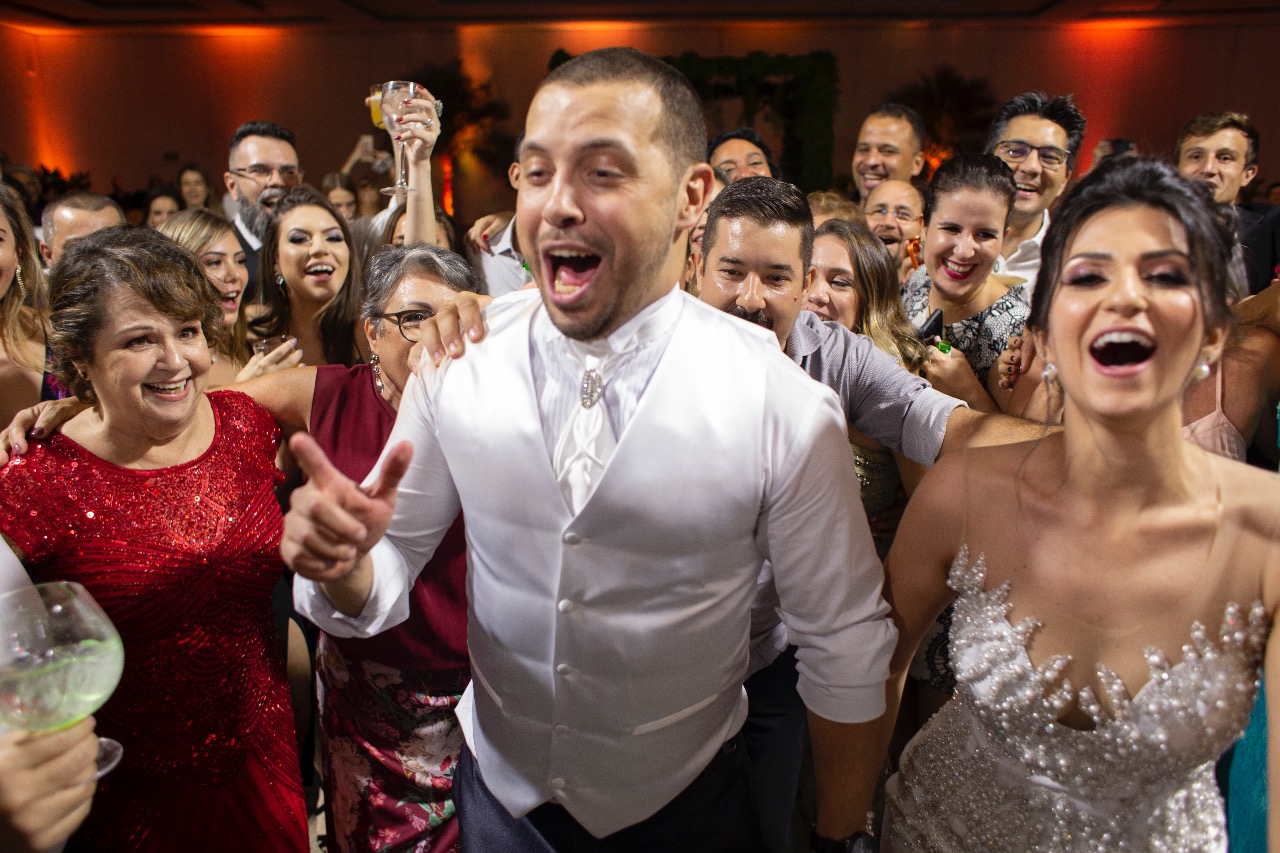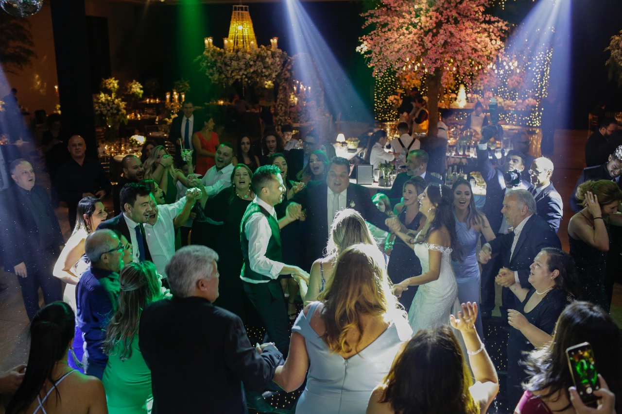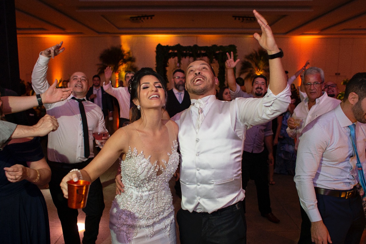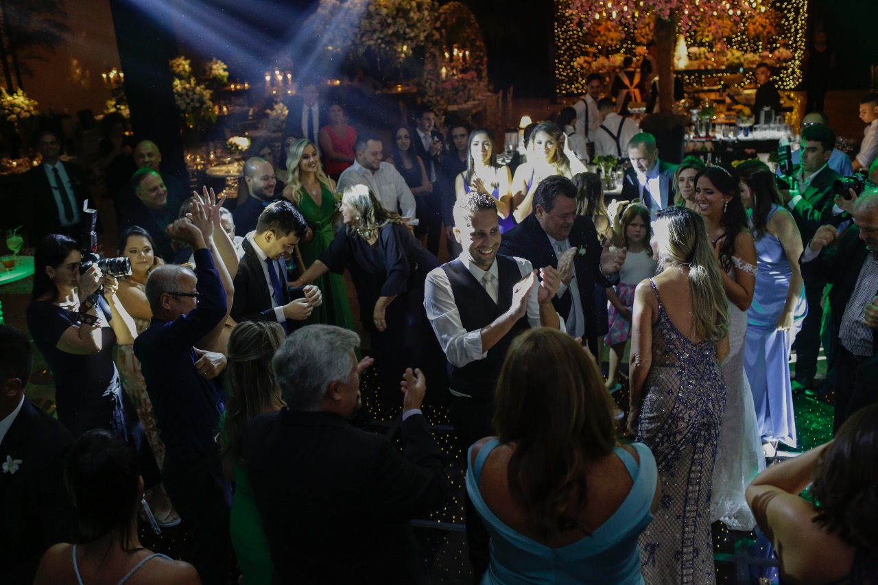 Pista cheia, noivos felizes, convidados fazendo parte desse dia tão especial a lindo na vida deles!