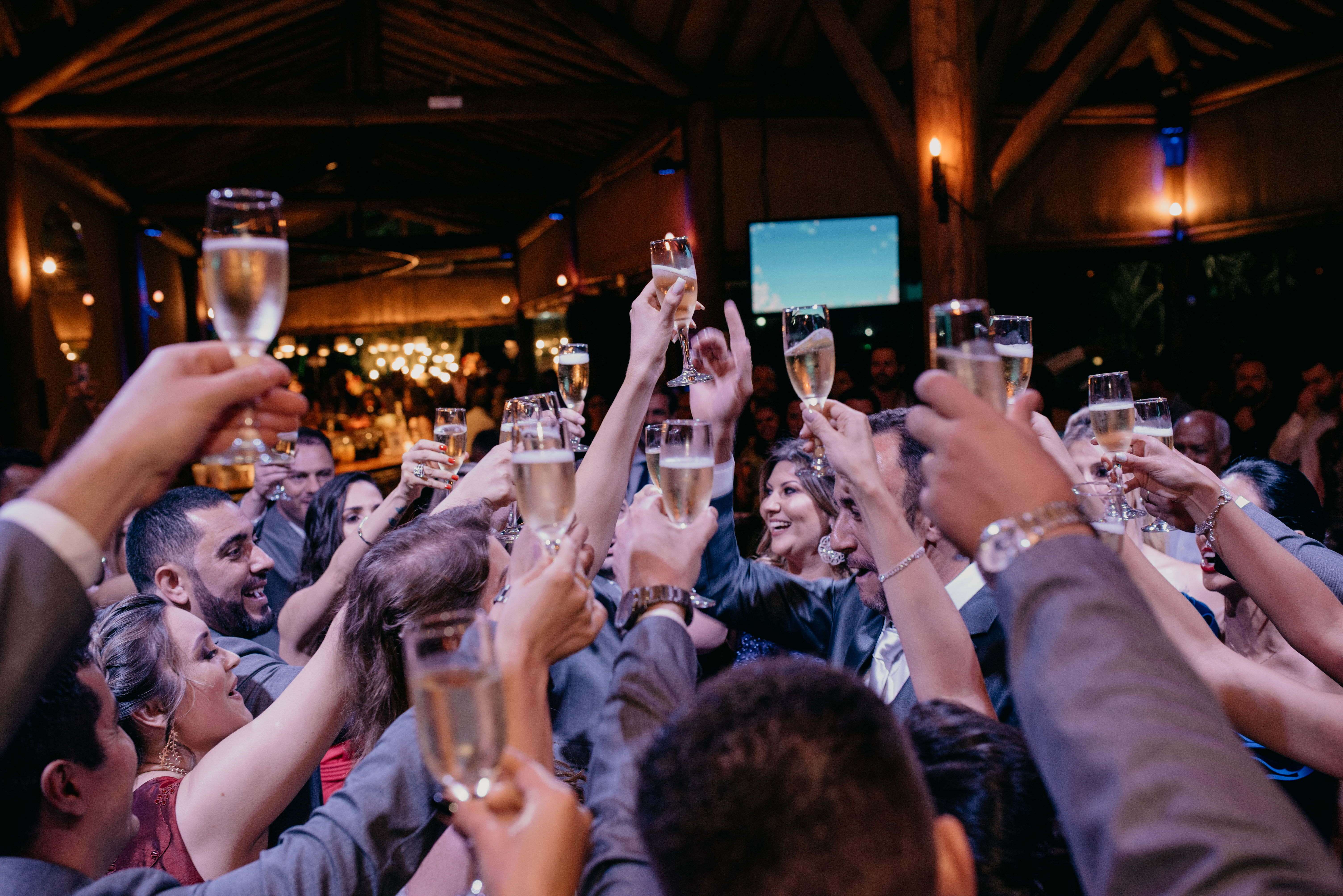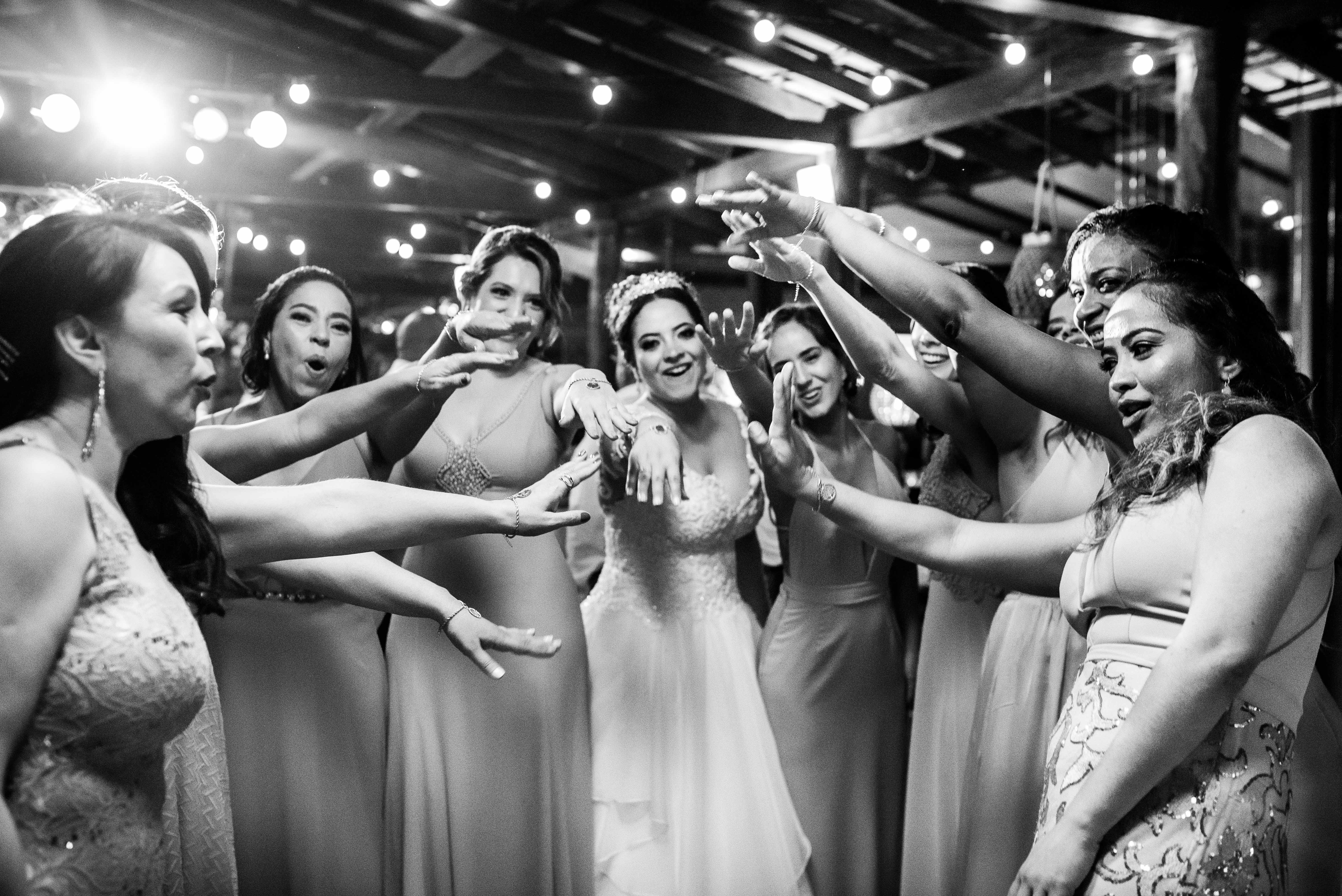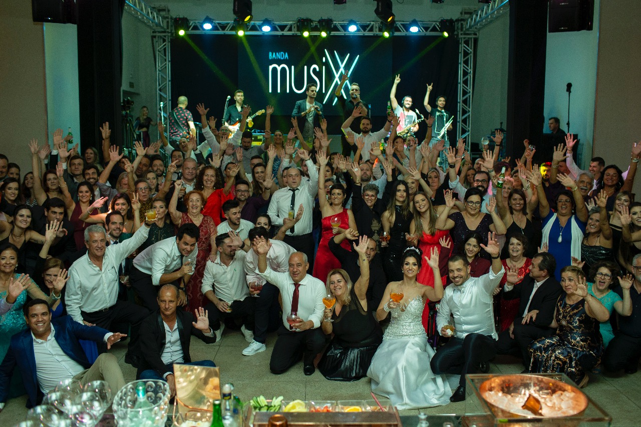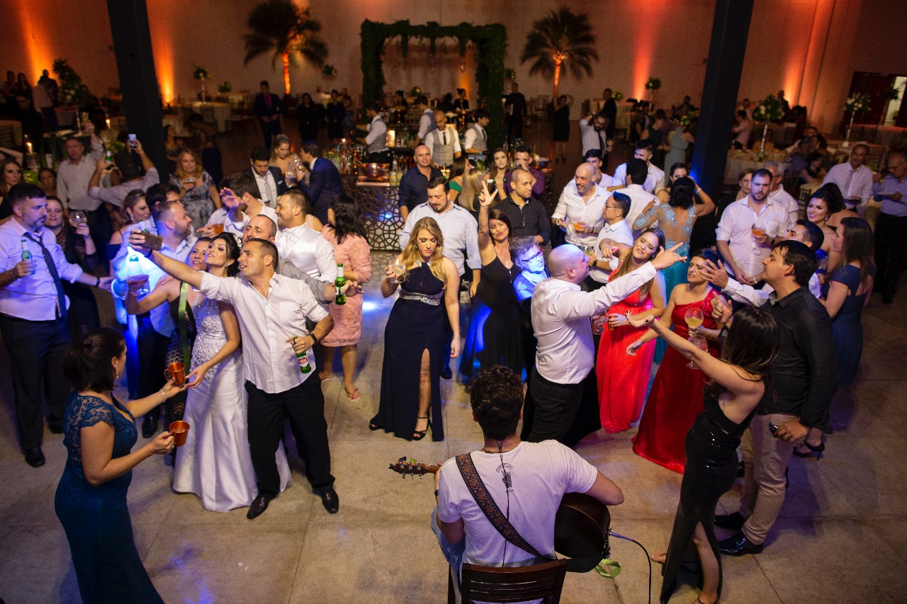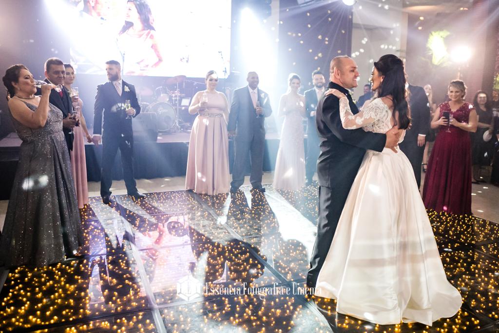 Pista cheia, noivos felizes, convidados fazendo parte desse dia tão especial a lindo na vida deles!