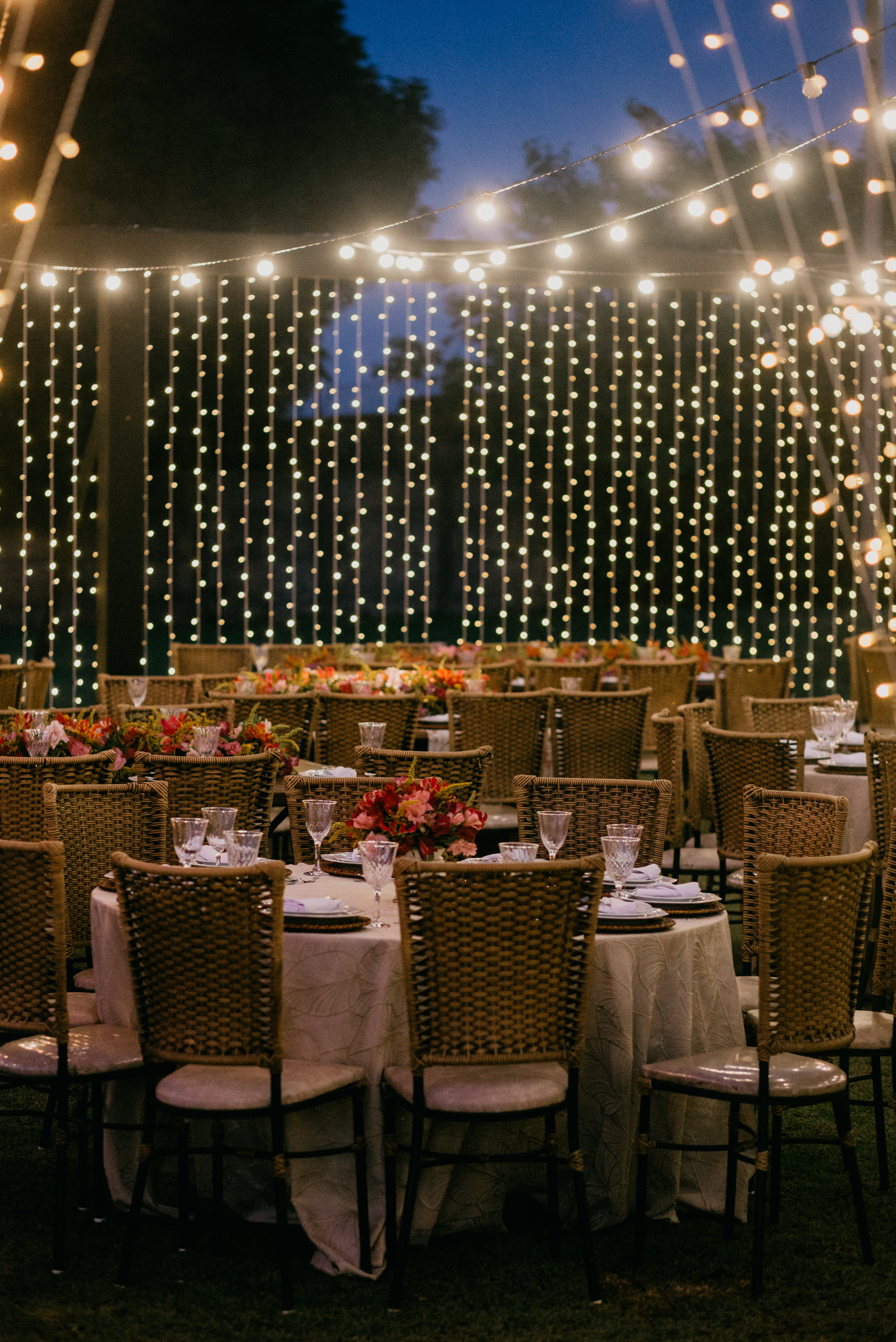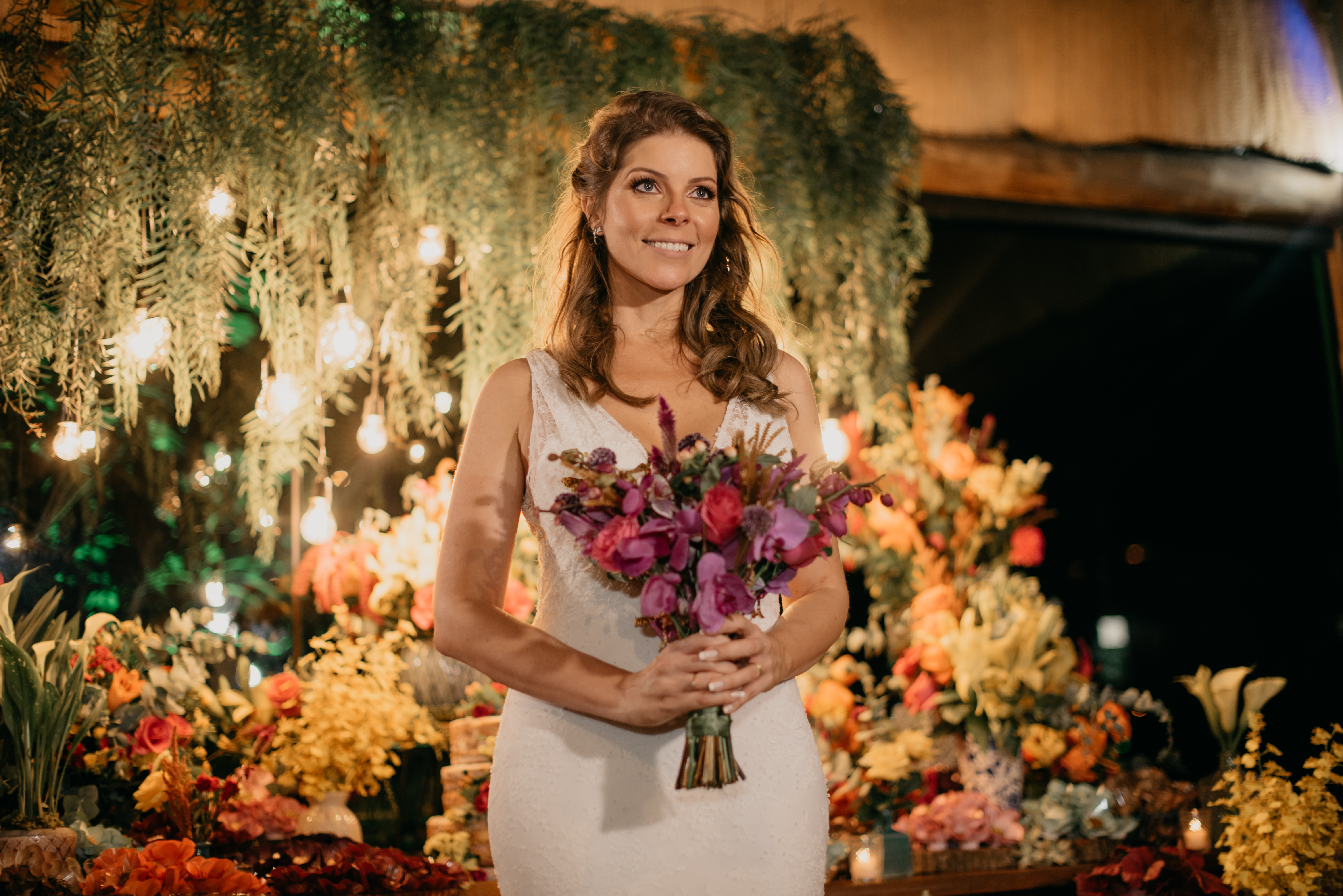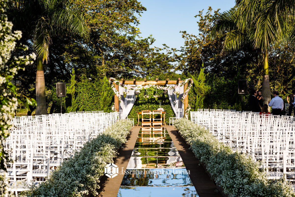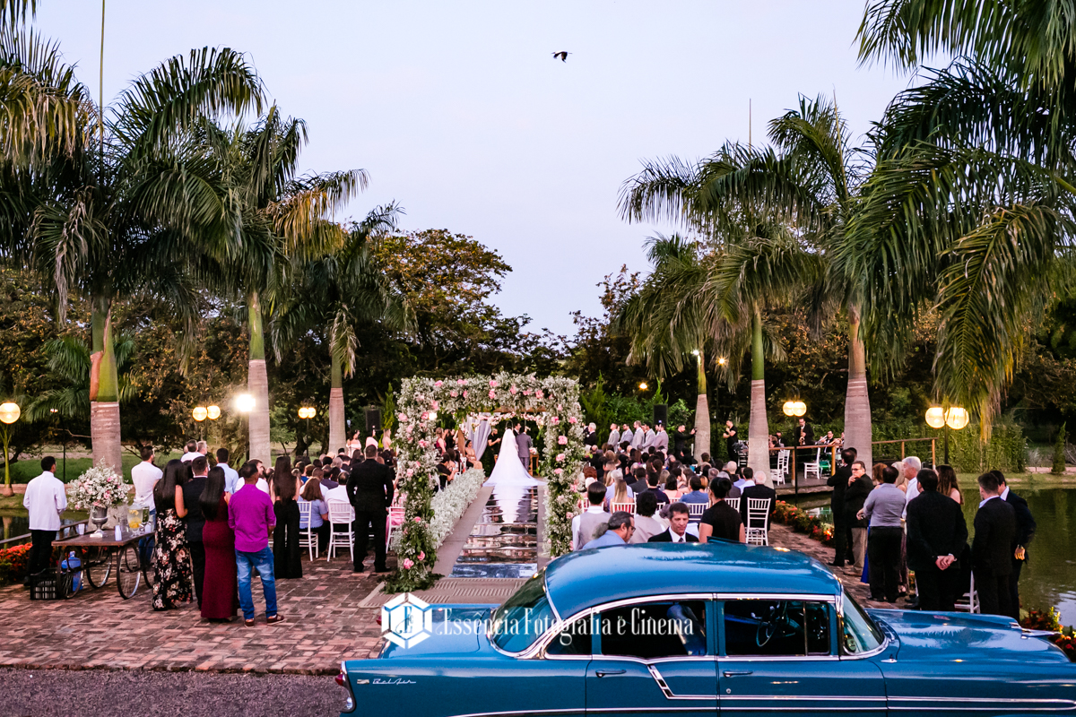 O cenário foi perfeito, o dia foi lindo… calor o dia todo, um entardecer lindo, e manteve esse tempo gostoso, para um casamento totalmente ao ar livre! Sim!!!! Tanto a cerimônia como a recepção foram ao ar livre, sem cobertura, sem tenda… Claro que contamos com a sorte!! Mas foi sensacional!