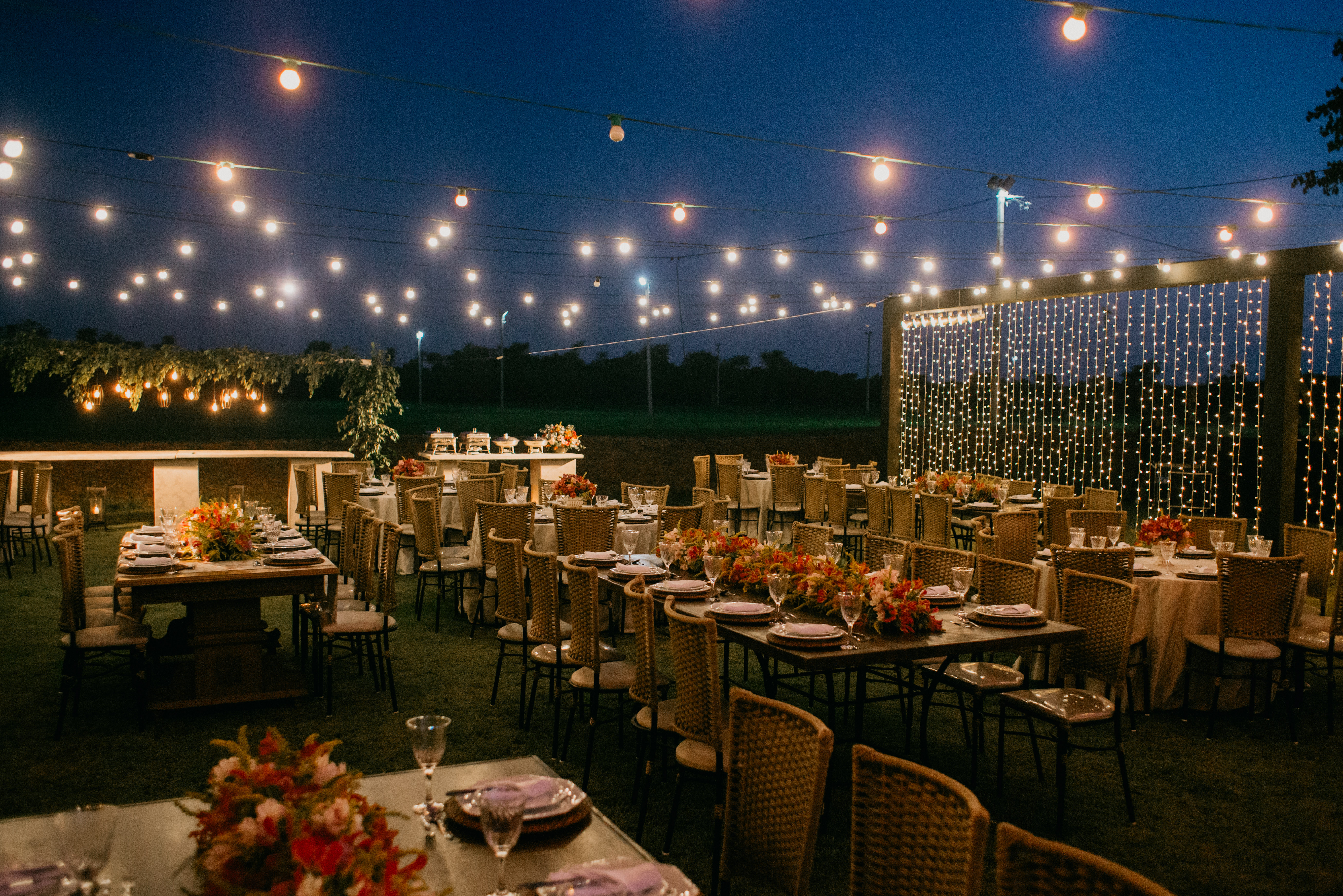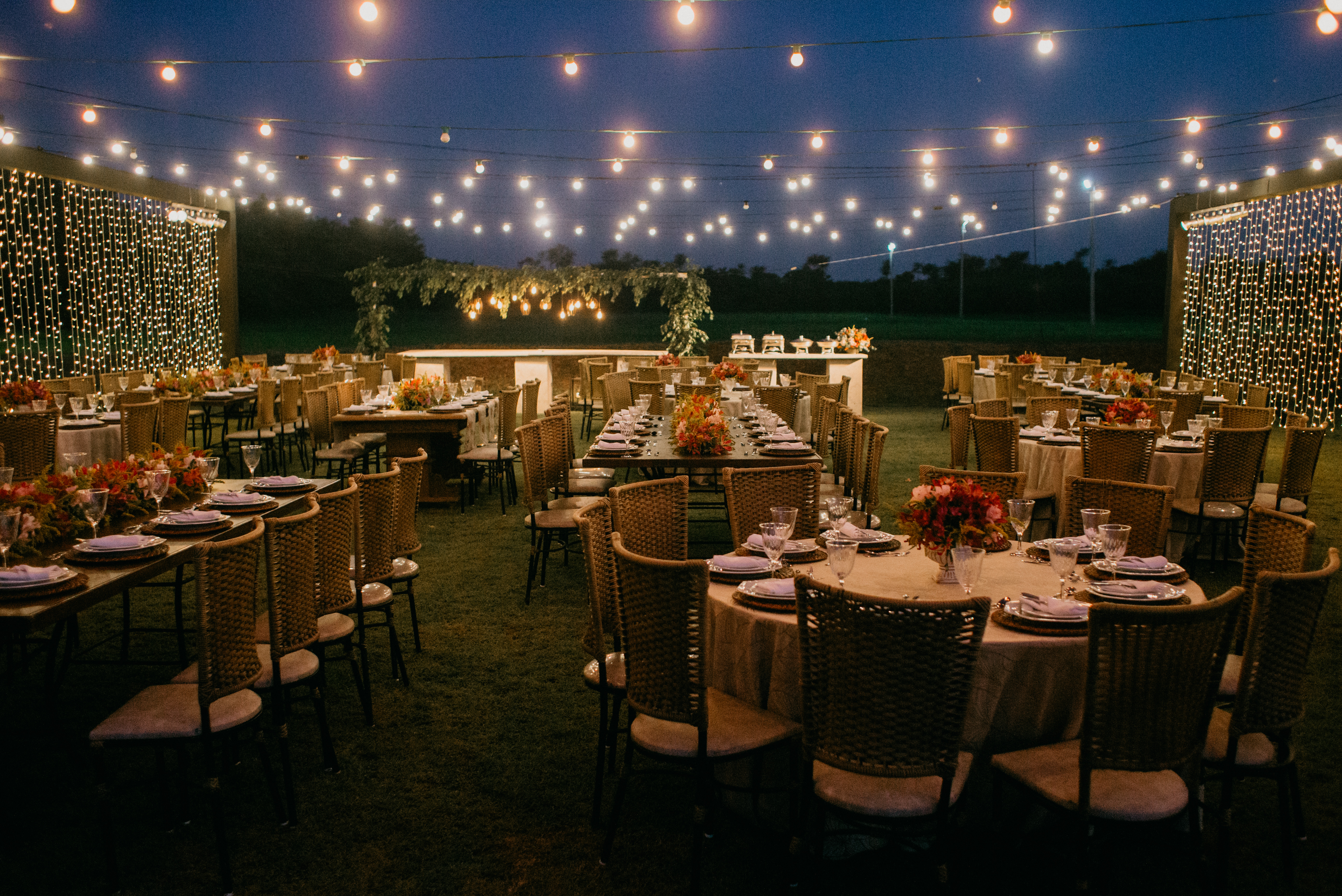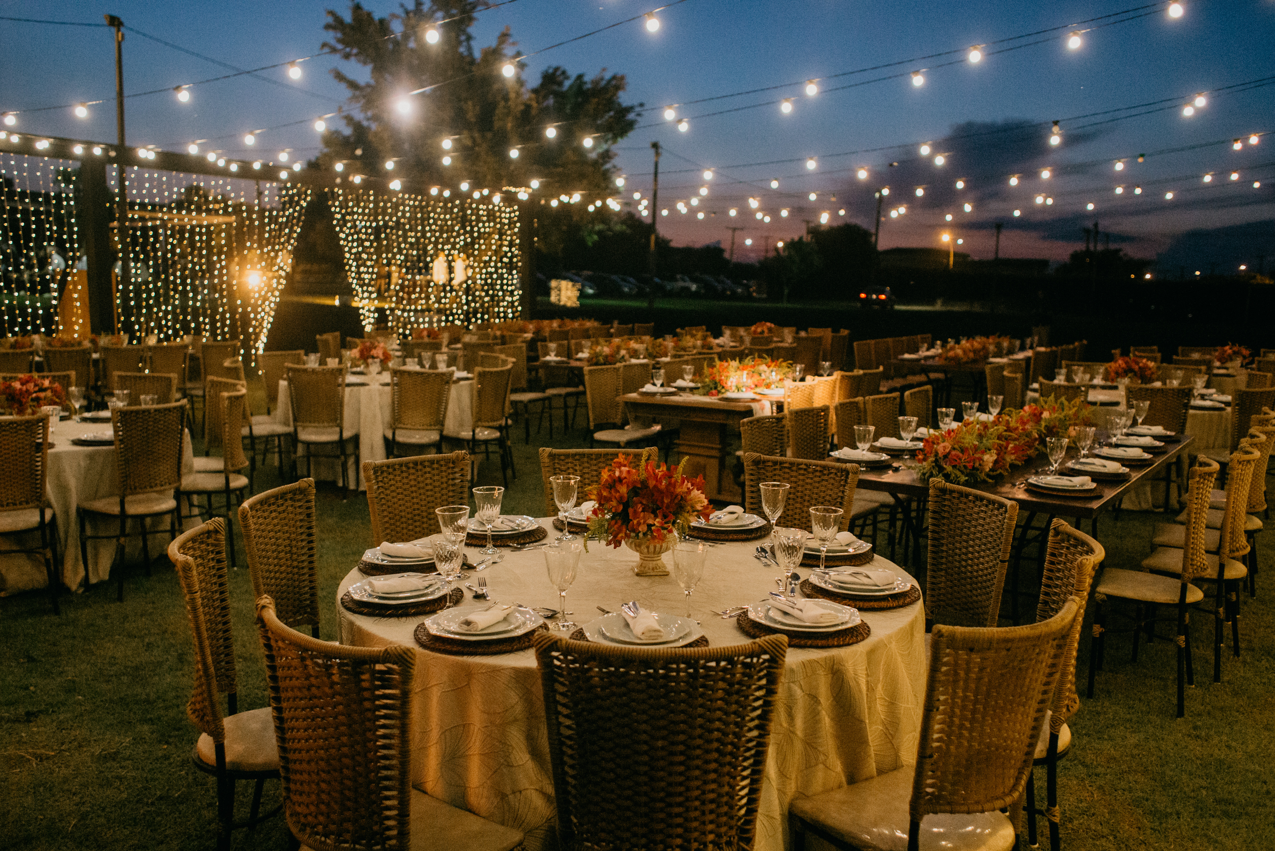 O cenário foi perfeito, o dia foi lindo… calor o dia todo, um entardecer lindo, e manteve esse tempo gostoso, para um casamento totalmente ao ar livre! Sim!!!! Tanto a cerimônia como a recepção foram ao ar livre, sem cobertura, sem tenda… Claro que contamos com a sorte!! Mas foi sensacional!