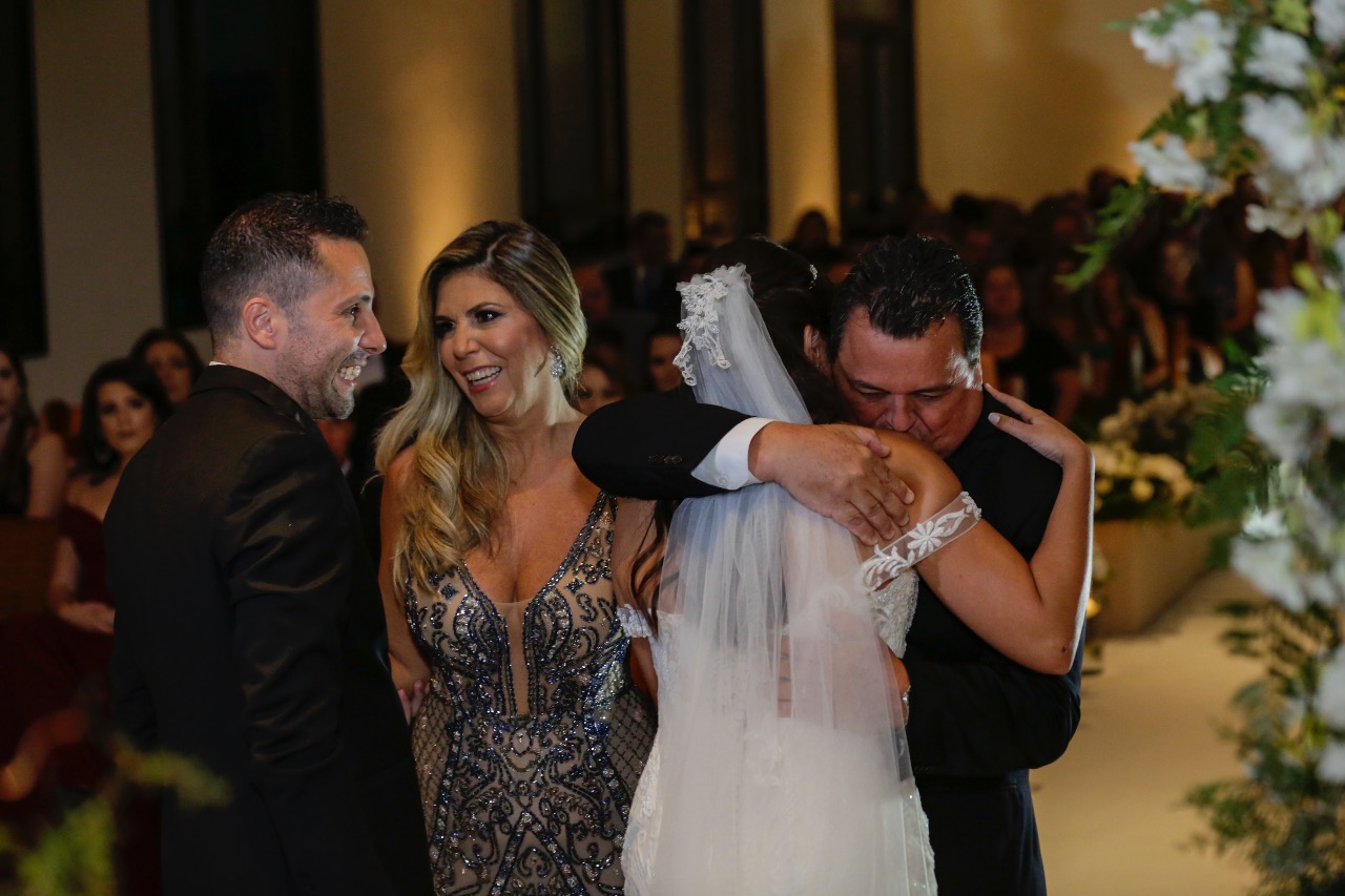 Chegamos ao grande dia, e driblamos a ansiedade dos dois! Tudo saiu conforme eles sempre sonharam! A Karina estava linda, entrou com o pai, andando suavemente ao encontro do amado e ele de braços dados com a mãe, uma fofa! Difícil conter a emoção!