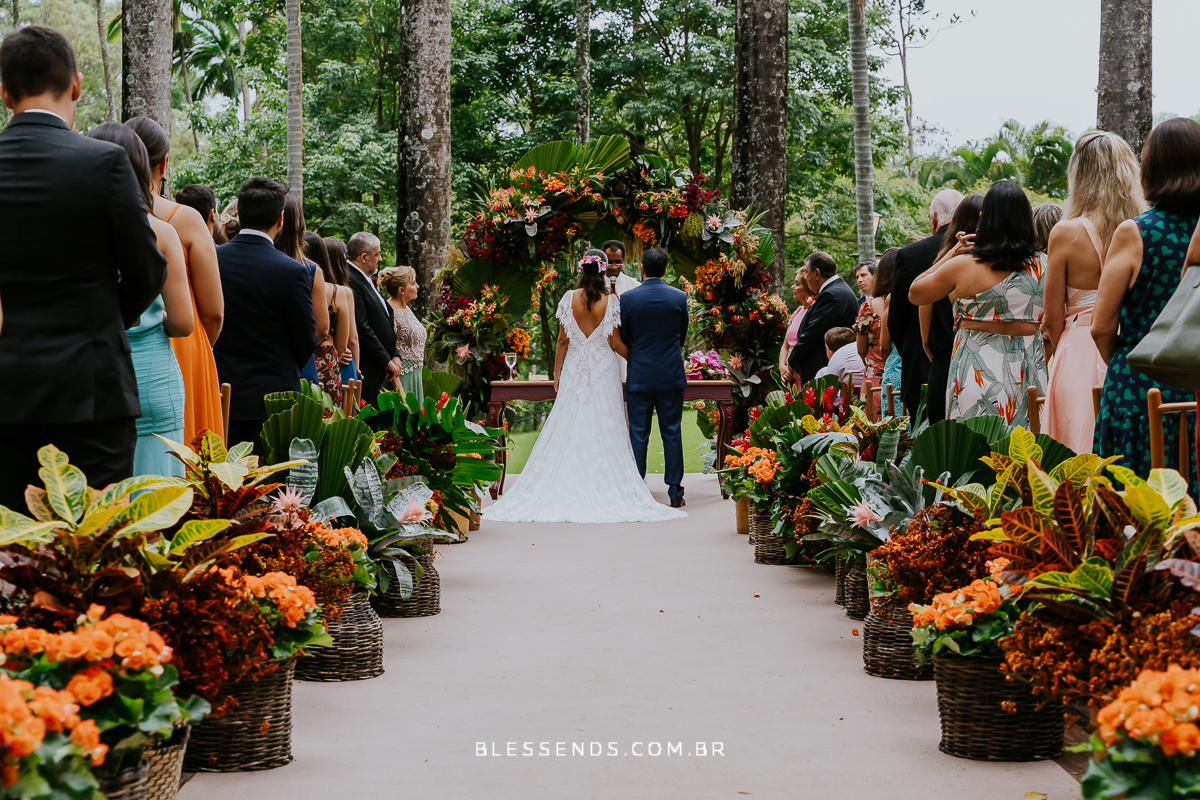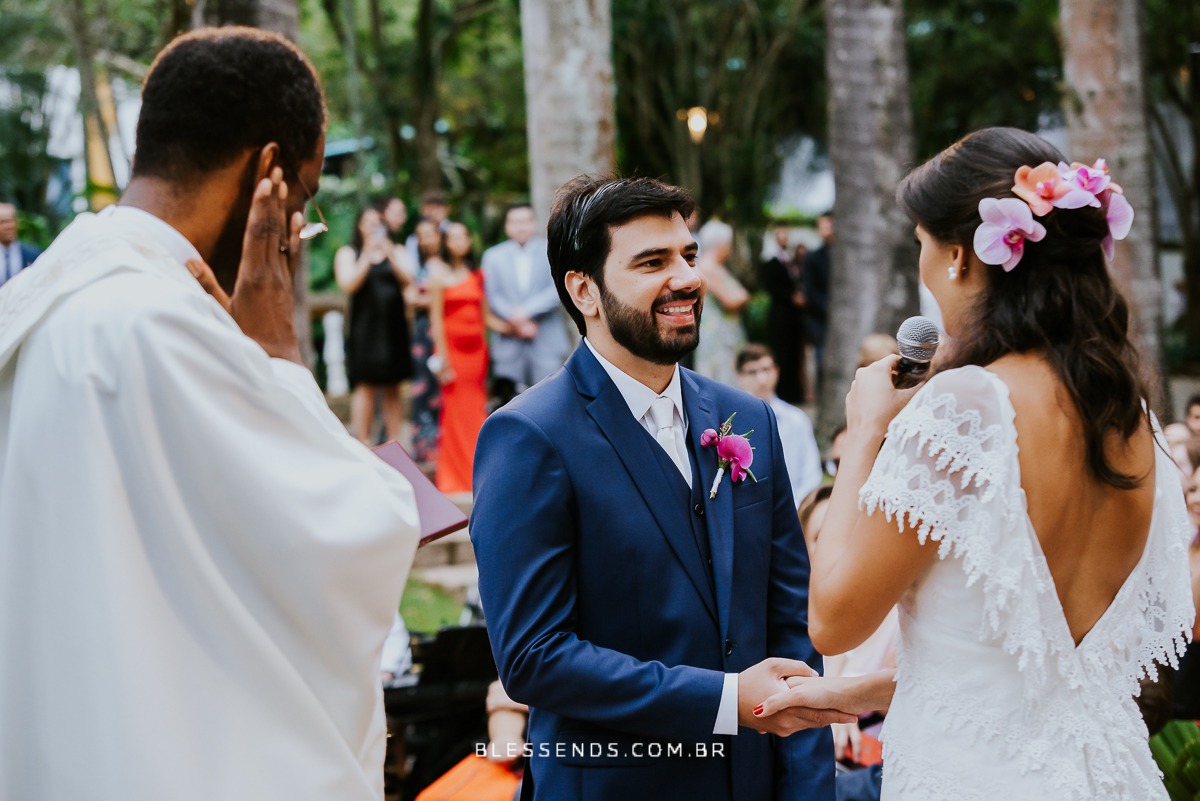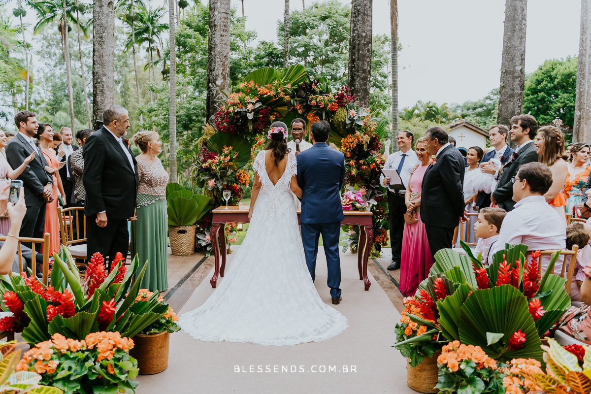 A cerimônia foi linda, até mesmo pela entrada dela… sozinha, plena, encantadora… indo ao encontro do amado! Serio, foi deslumbrante!