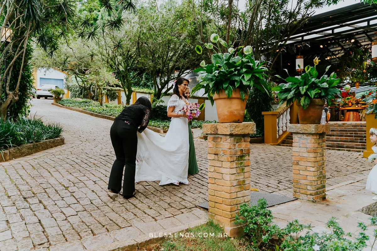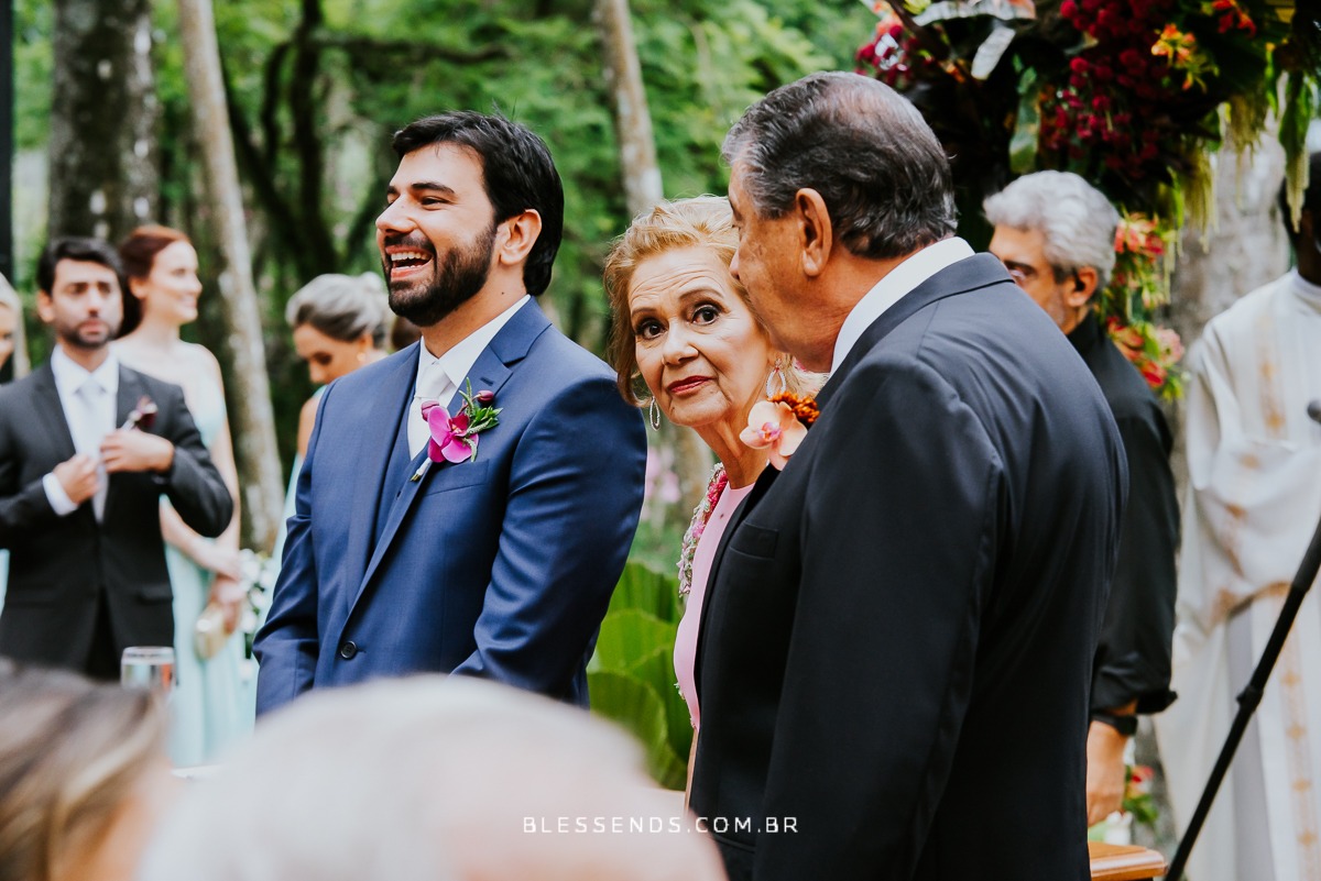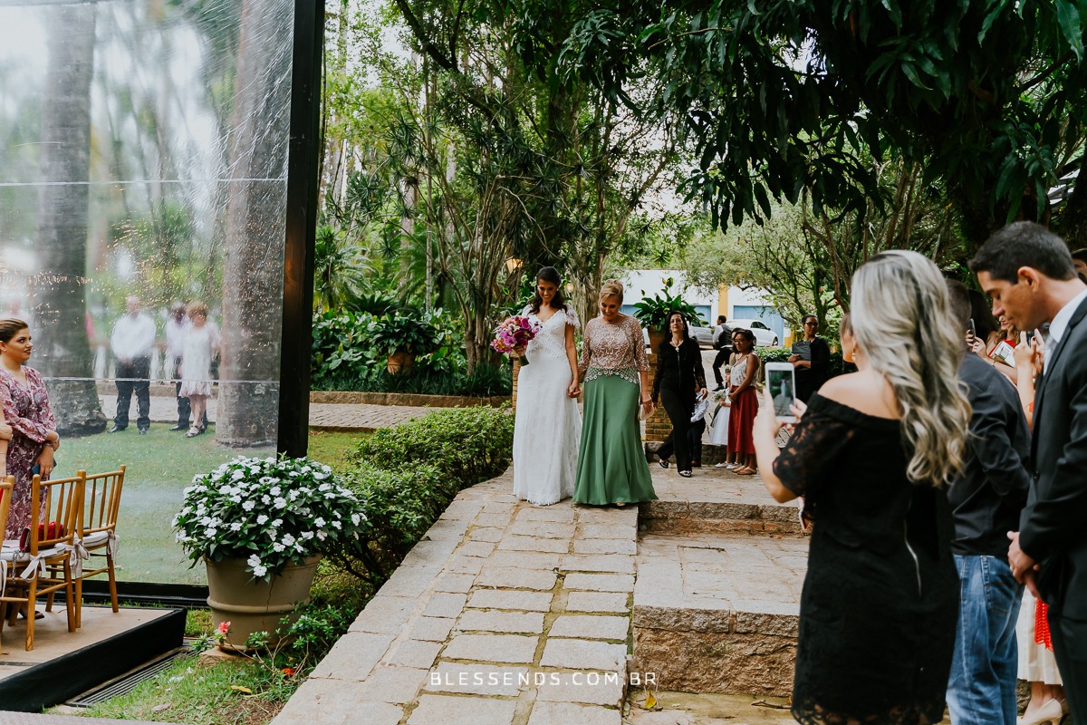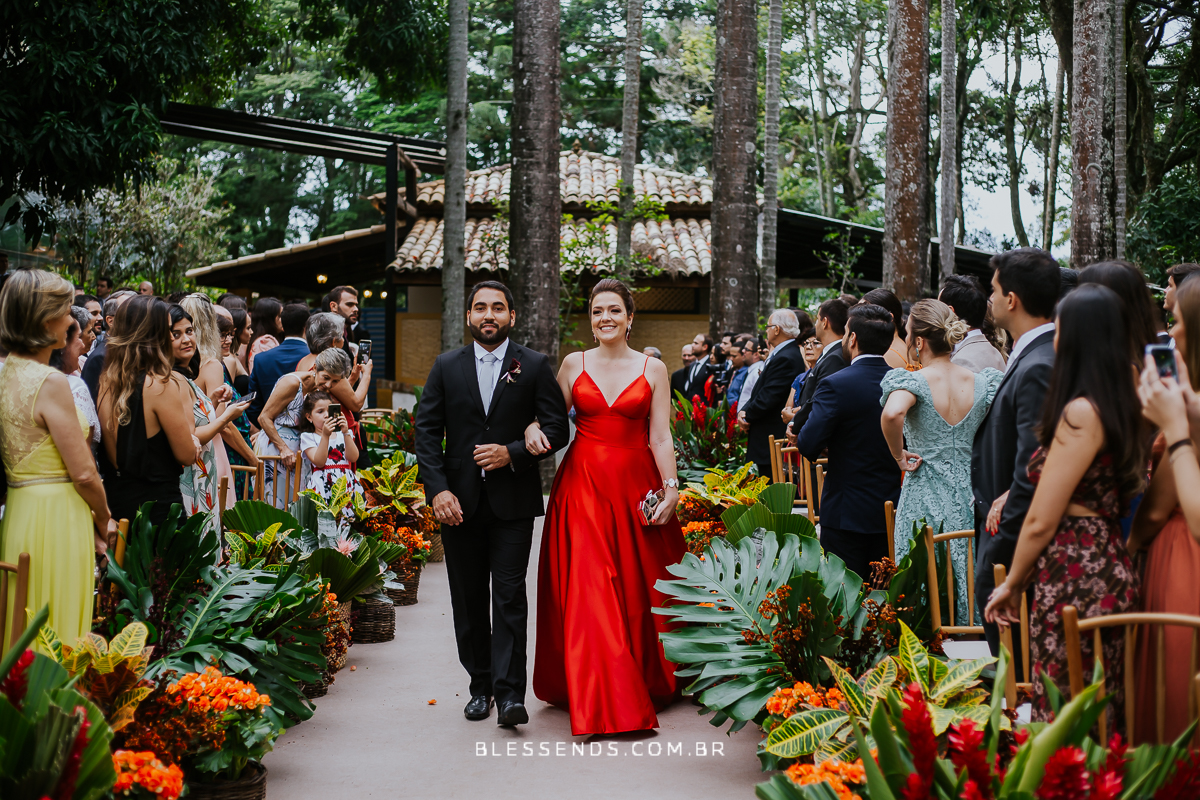 A cerimônia foi linda, até mesmo pela entrada dela… sozinha, plena, encantadora… indo ao encontro do amado! Serio, foi deslumbrante!