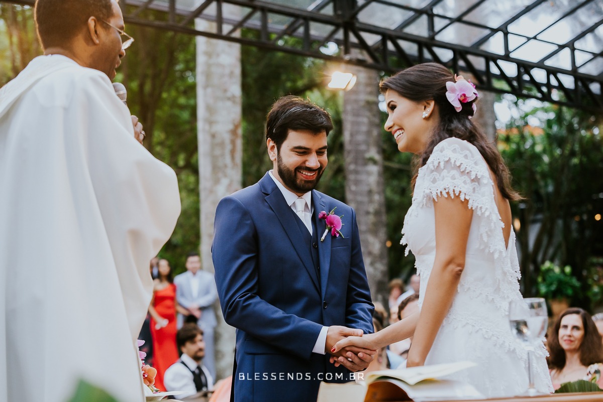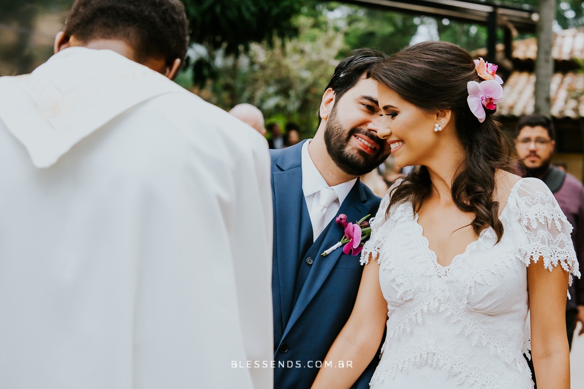 Uma cerimônia linda… cheia de emoção, desde a entrada dela até os cumprimentos! Eles são muito queridos e por morarem fora, estarem longe de amigos e familiares, deu um toque maior de emoção!