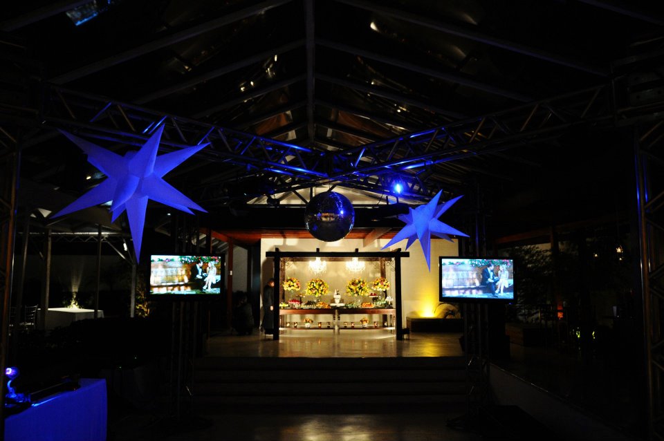 A festa foi bacana, em um estilo bem diferente… Mesas? Poucas, todos os convidados acomodados em lounges, mesas de boteco, circulando o tempo todo…