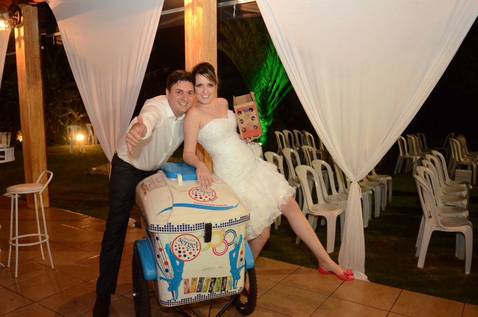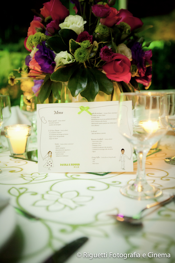 Foi um casamento cheio de detalhes, a “marca do casal” esteve presente em tudo, convites, chinelos, eco bags, adesivos, cardápios, tudo mesmo!