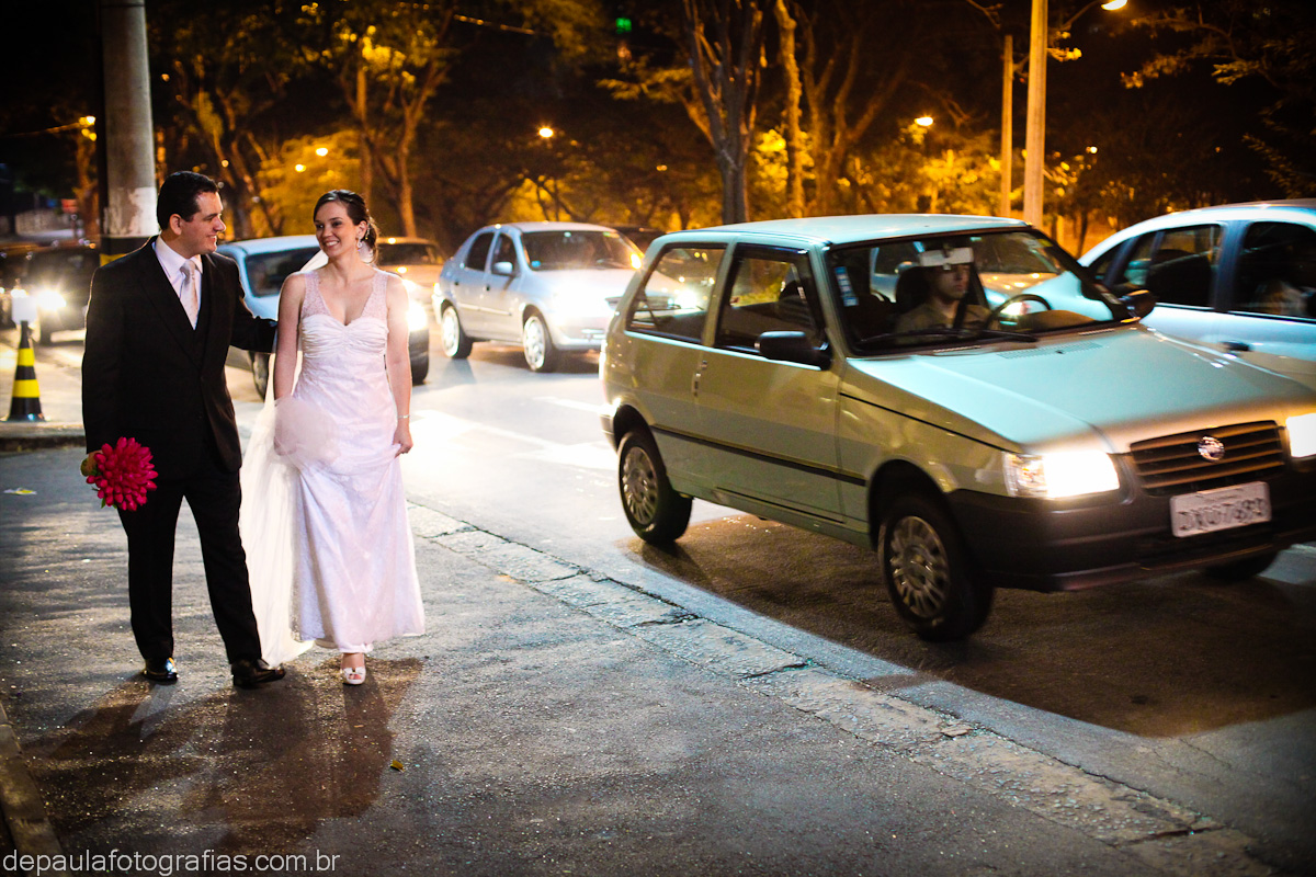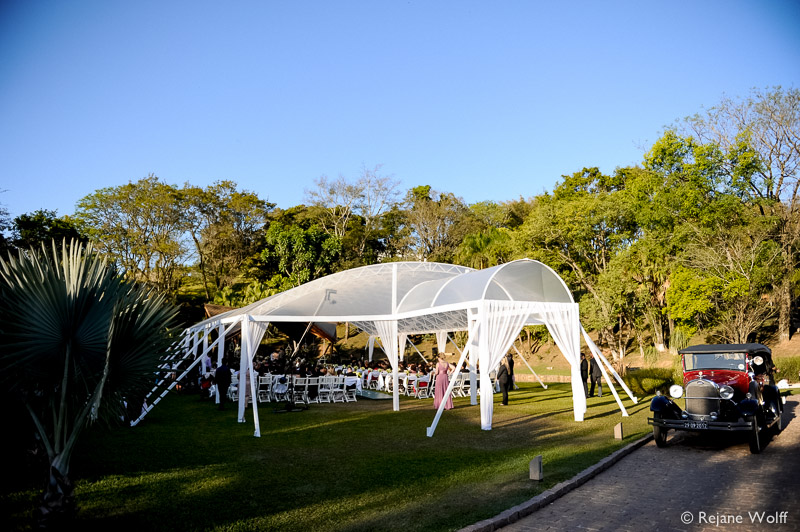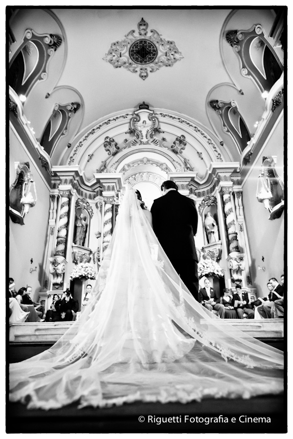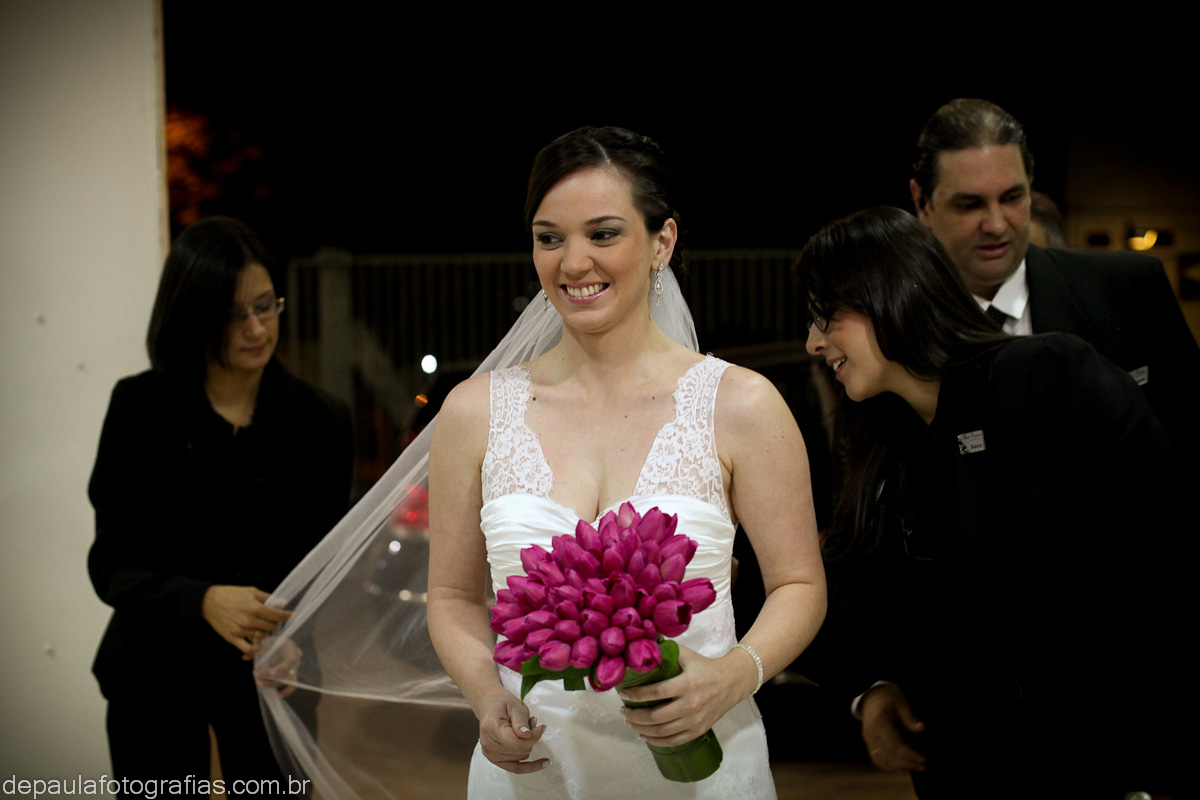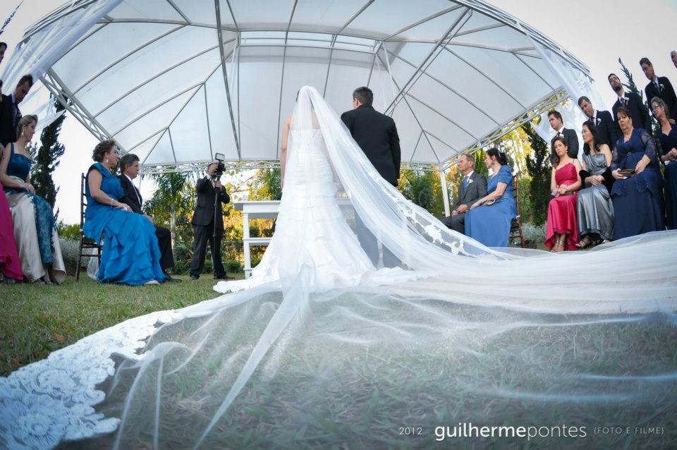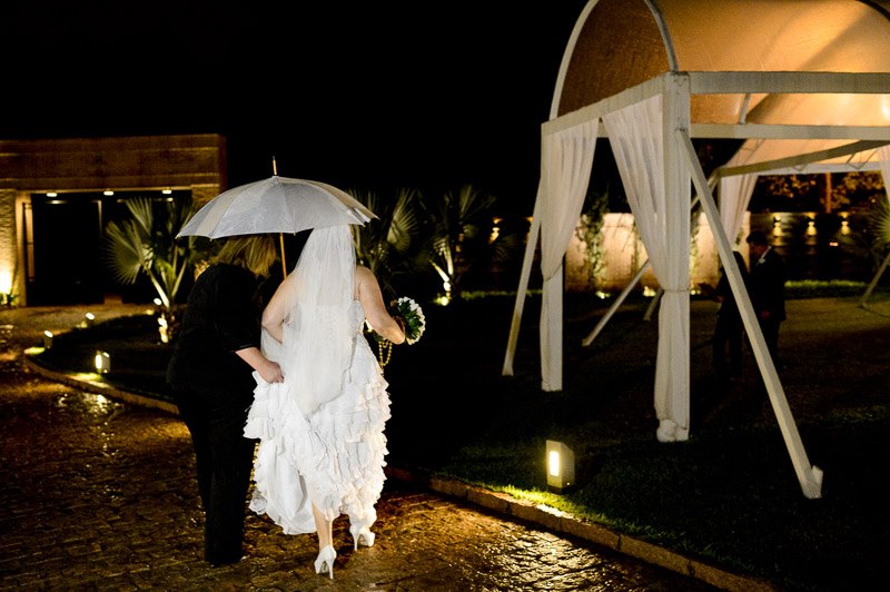 Mesmo as pequenas gotas de chuva que caíram na entrada da noiva não foram suficientes para atrapalhar nada, ao contrário, deu um toque especial, pois fomos conversando pelo caminho, debaixo do guarda chuva, dando boas risadas!!!